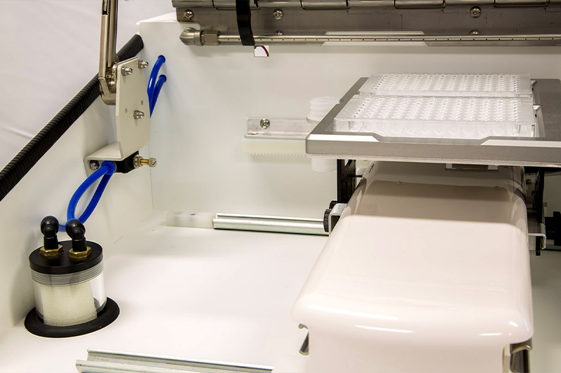 半自动生物检材仪,主要用于从实验室干样本(FTA 卡、滤纸血液卡或滤纸唾液卡等)采集不同直径大小的小片样本,将其收集到微孔板中,同时记录每个样本的条码信息。