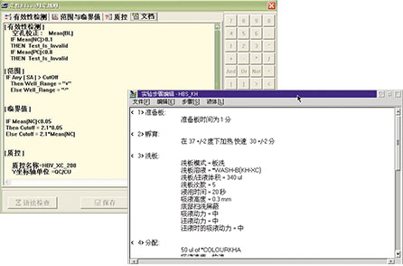 每一种试剂盒的处理过程均以窗口中对活方式进行,可设定试剂盒信息,酶标板设置、处理过程设定以及试验结果的评价与计量