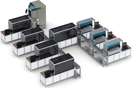 酶标板进入后,由双条码机分别2次识别,确保不同实验,按照编辑的不同实验方法无误地处理